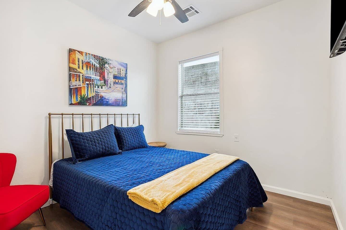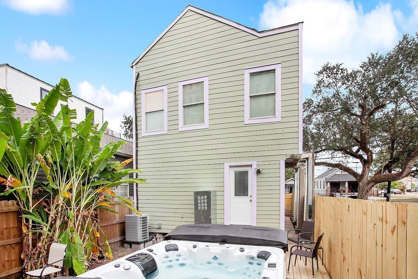 Stay at NOLA Chic, a spacious 5BR, 2BA retreat in the heart of New Orleans! Relax in the private hot tub, stream on Smart TVs in every room, and enjoy coffee from your own coffee station. With a fenced backyard, full kitchen, washer/dryer, and plenty of space for groups, it’s perfect for family trips, corporate stays, or midterm housing. Just minutes to the French Quarter, Superdome, and Garden District!