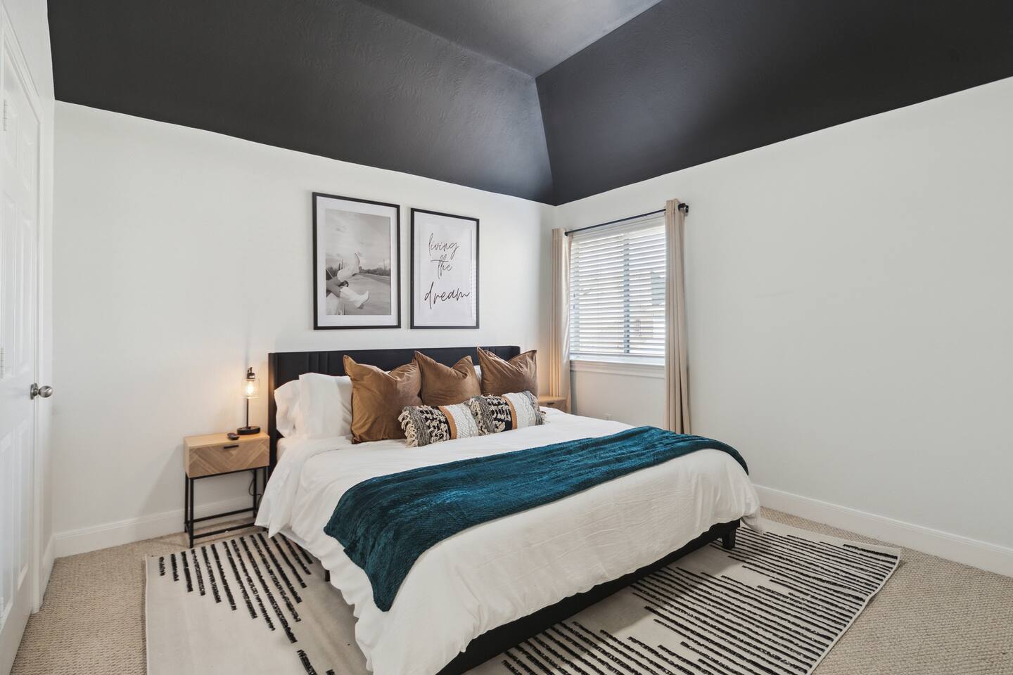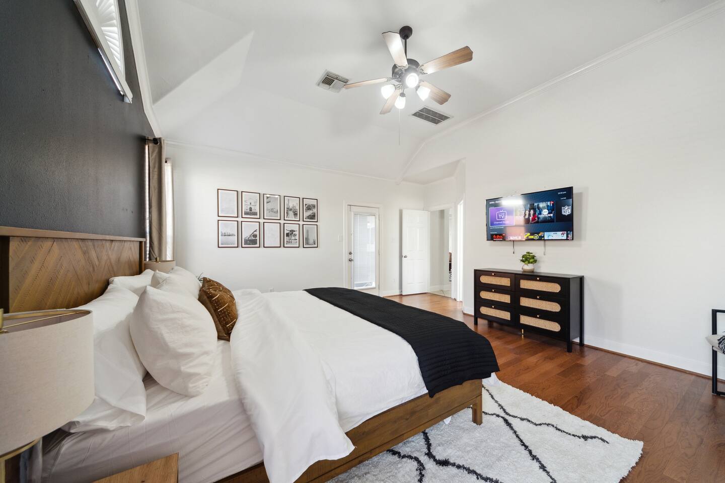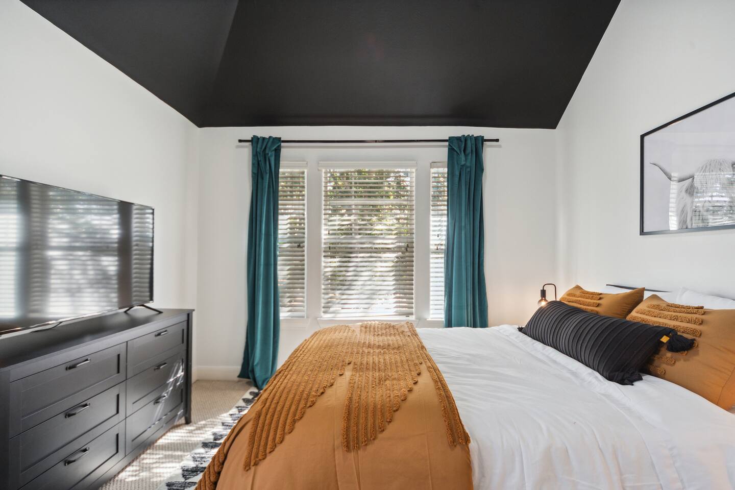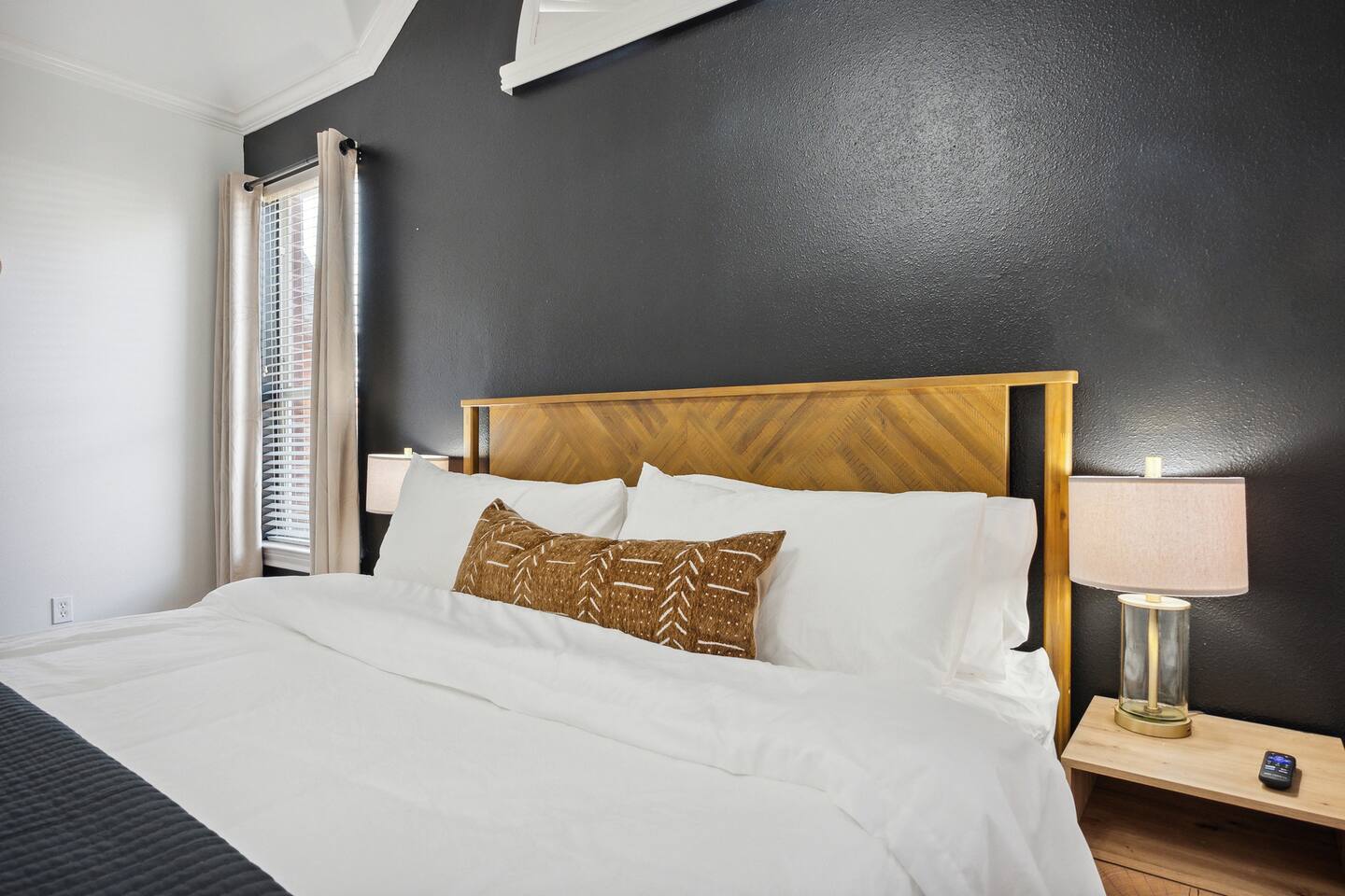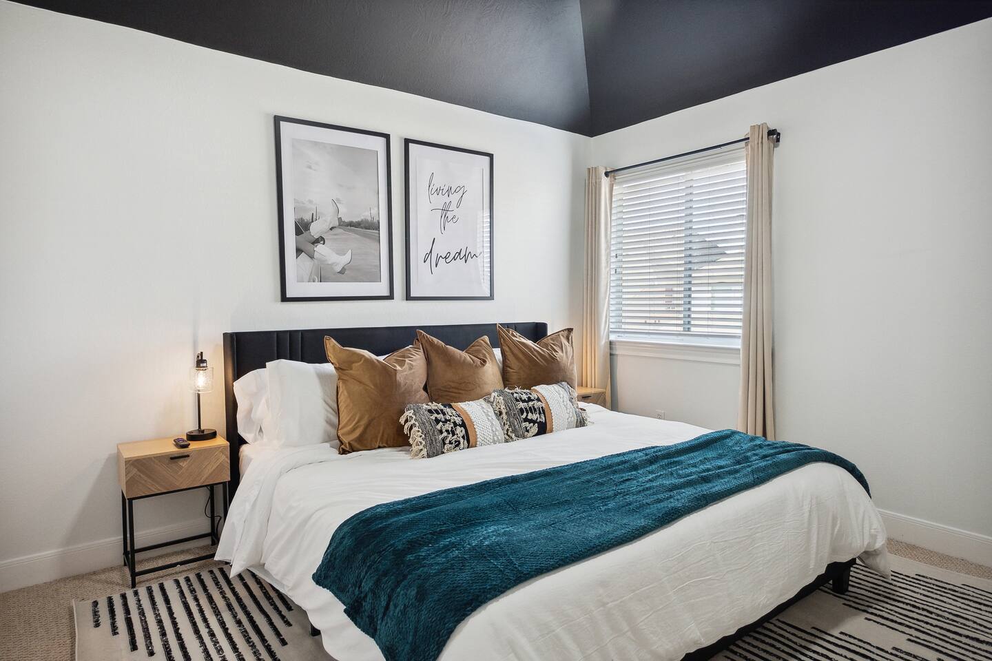 Welcome to the Modern Texan Retreat! This spacious home has plenty of space for everyone. Upon arrival you will find plenty of parking with a 3 car garage and expansive driveway on this corner lot property. Come in and get settled! Walking into the property you’ll be met with big Texas style in our oversized game room with pool table and office space directly off the entry way. This space flows perfectly into the open concept kitchen, dining and living spaces with plenty of seating for your whole group. Our kitchen is readily stocked with all of your basic cooking supplies including spices, cookware, bakeware, Kuerig Duo coffee maker & coffee, blender, air fryer and more! Say “howdy” to the spacious living room, complete with a large sectional couch, 65 in TV and gas fireplace for those colder nights & game day fun! On the main level you will also find the massive primary suite with a king size bed, dresser, seating & oversized primary bathroom with a large soaking tub, walk in shower and plenty of closet space! The half bathroom off the hallway and laundry room can also be found on this level with direct access to the garage. Head upstairs to find the 4 additional bedrooms. Each room consists of a bed, dresser, smart tv & more. We have 3 king size beds, two queen size beds, a futon & queen air mattress in the home, each in their own individual rooms. For our younger travelers we also supply a pack n play in the primary room. Upstairs has two additional full bathrooms, both with a tub/shower combo and of course our incredible theatre room with massage chairs for your viewing pleasure! This room is the perfect place for additional guests to sleep and stays quite dark! Outside we have set you up with a fire pit area with cooktop fire pit, charcoal BBQ grill, hot tub, play area (playset has been disassembled and will be replaced at a later date) and plenty of seating! You have direct access to this space through the primary bedroom and the dining room/living room areas. Our backyard is fully fenced in, making it perfect for our small or furry friends!