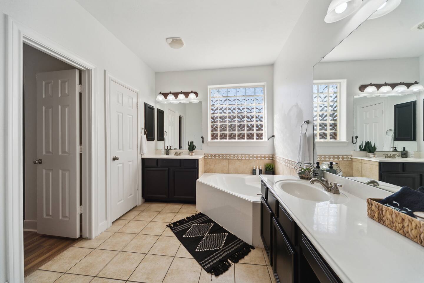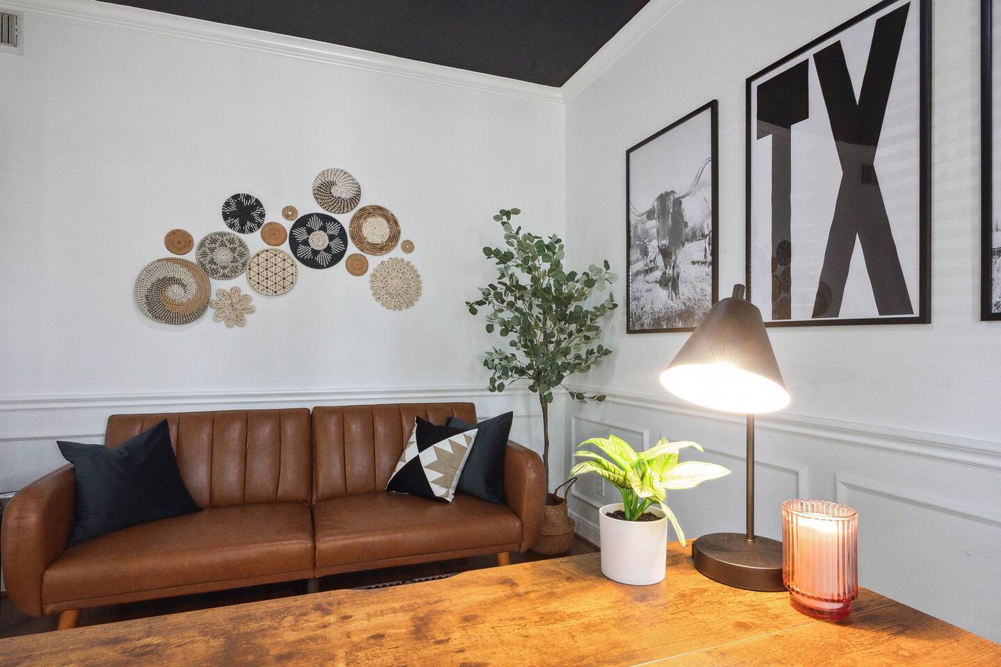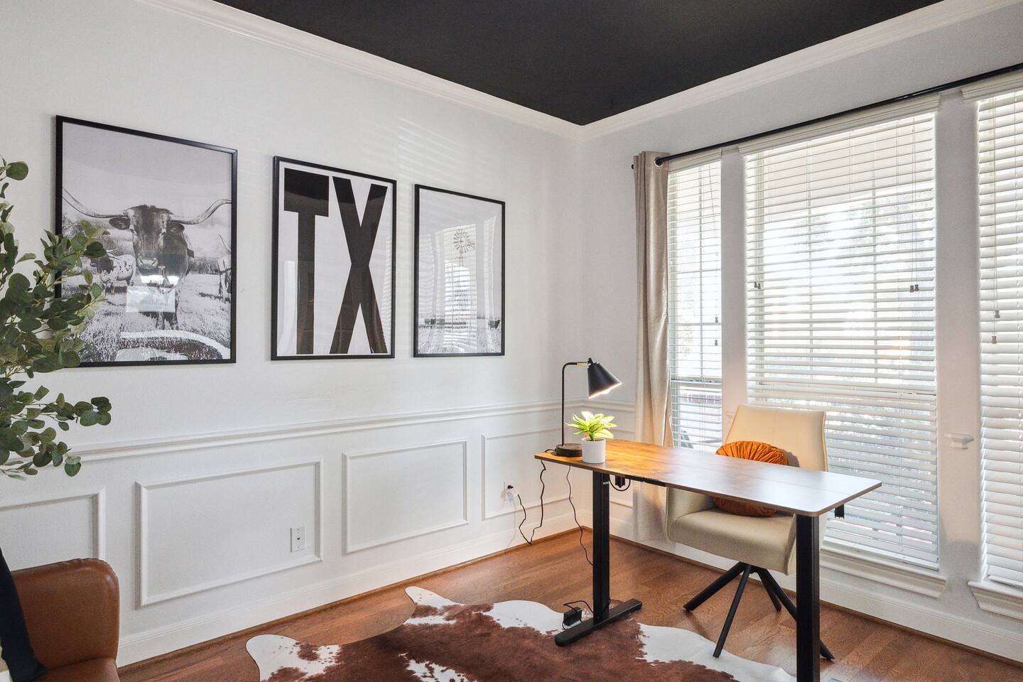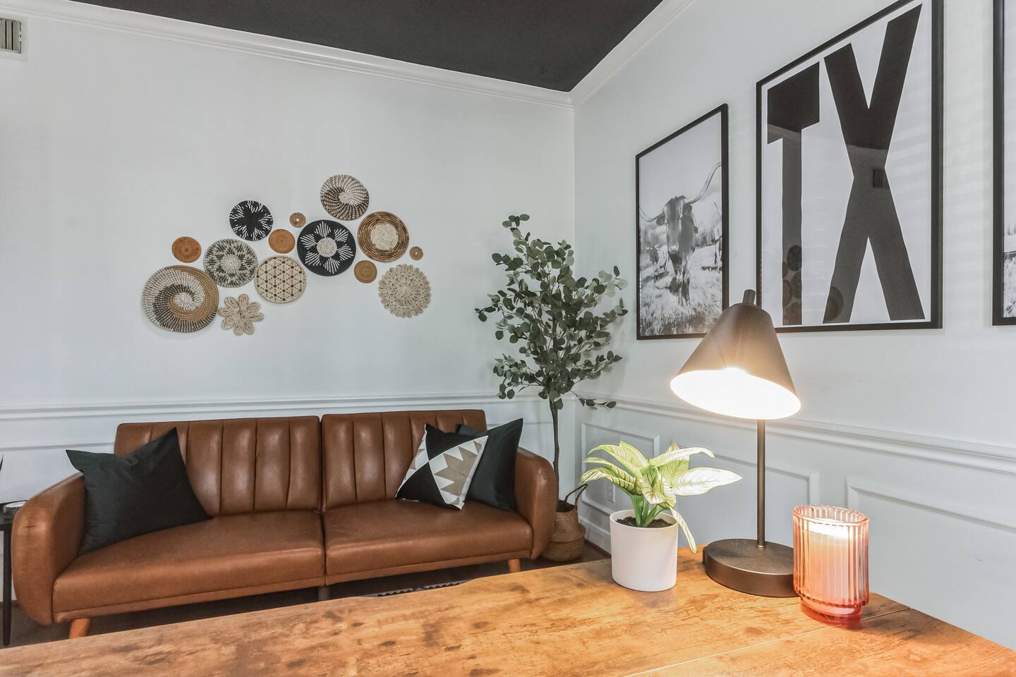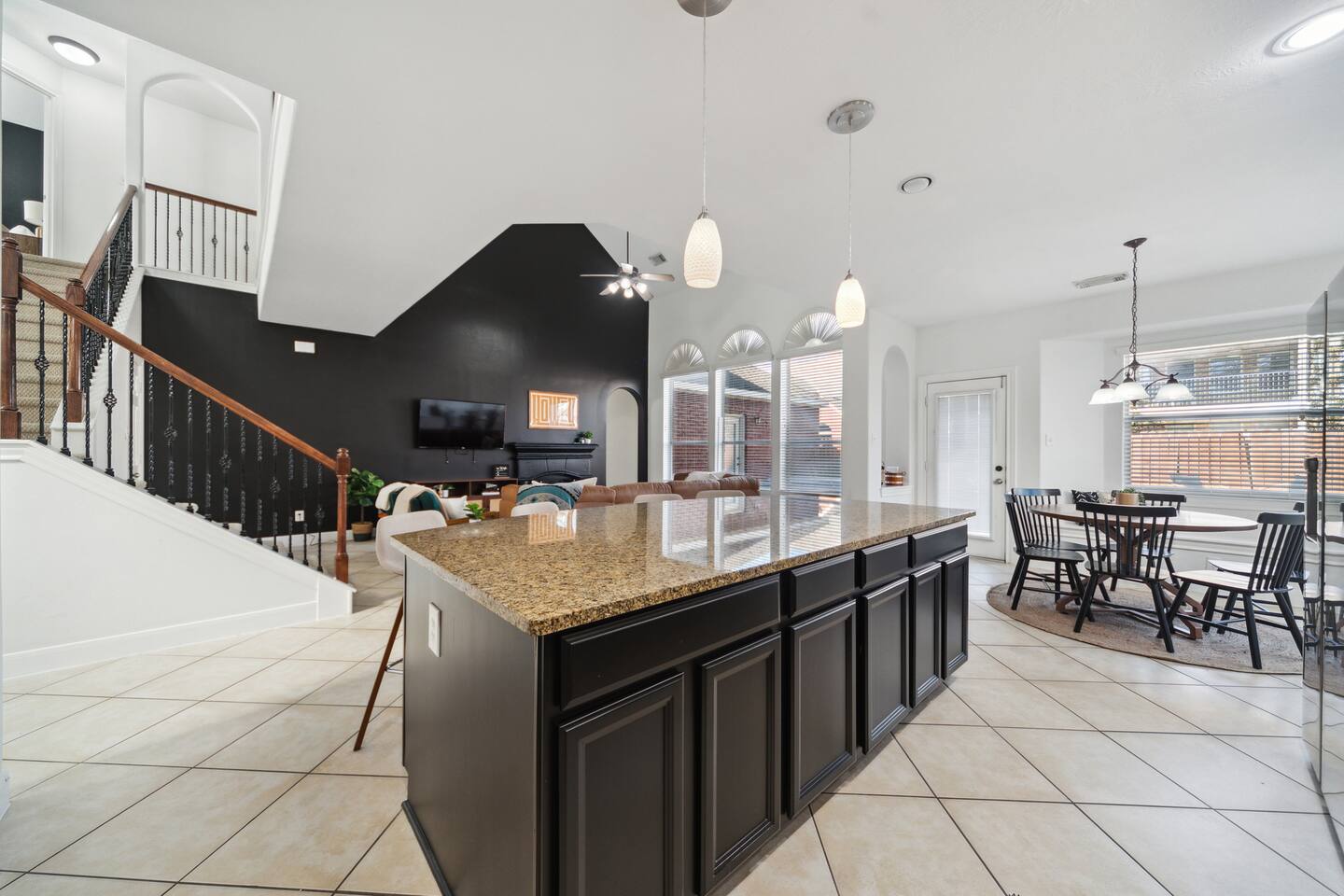 Welcome to the Modern Texan Retreat! This spacious home has plenty of space for everyone. Upon arrival you will find plenty of parking with a 3 car garage and expansive driveway on this corner lot property. Come in and get settled! Walking into the property you’ll be met with big Texas style in our oversized game room with pool table and office space directly off the entry way. This space flows perfectly into the open concept kitchen, dining and living spaces with plenty of seating for your whole group. Our kitchen is readily stocked with all of your basic cooking supplies including spices, cookware, bakeware, Kuerig Duo coffee maker & coffee, blender, air fryer and more! Say “howdy” to the spacious living room, complete with a large sectional couch, 65 in TV and gas fireplace for those colder nights & game day fun! On the main level you will also find the massive primary suite with a king size bed, dresser, seating & oversized primary bathroom with a large soaking tub, walk in shower and plenty of closet space! The half bathroom off the hallway and laundry room can also be found on this level with direct access to the garage. Head upstairs to find the 4 additional bedrooms. Each room consists of a bed, dresser, smart tv & more. We have 3 king size beds, two queen size beds, a futon & queen air mattress in the home, each in their own individual rooms. For our younger travelers we also supply a pack n play in the primary room. Upstairs has two additional full bathrooms, both with a tub/shower combo and of course our incredible theatre room with massage chairs for your viewing pleasure! This room is the perfect place for additional guests to sleep and stays quite dark! Outside we have set you up with a fire pit area with cooktop fire pit, charcoal BBQ grill, hot tub, play area (playset has been disassembled and will be replaced at a later date) and plenty of seating! You have direct access to this space through the primary bedroom and the dining room/living room areas. Our backyard is fully fenced in, making it perfect for our small or furry friends!