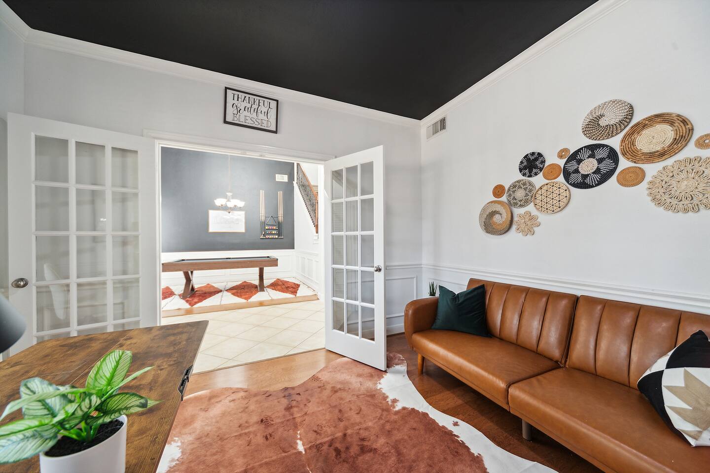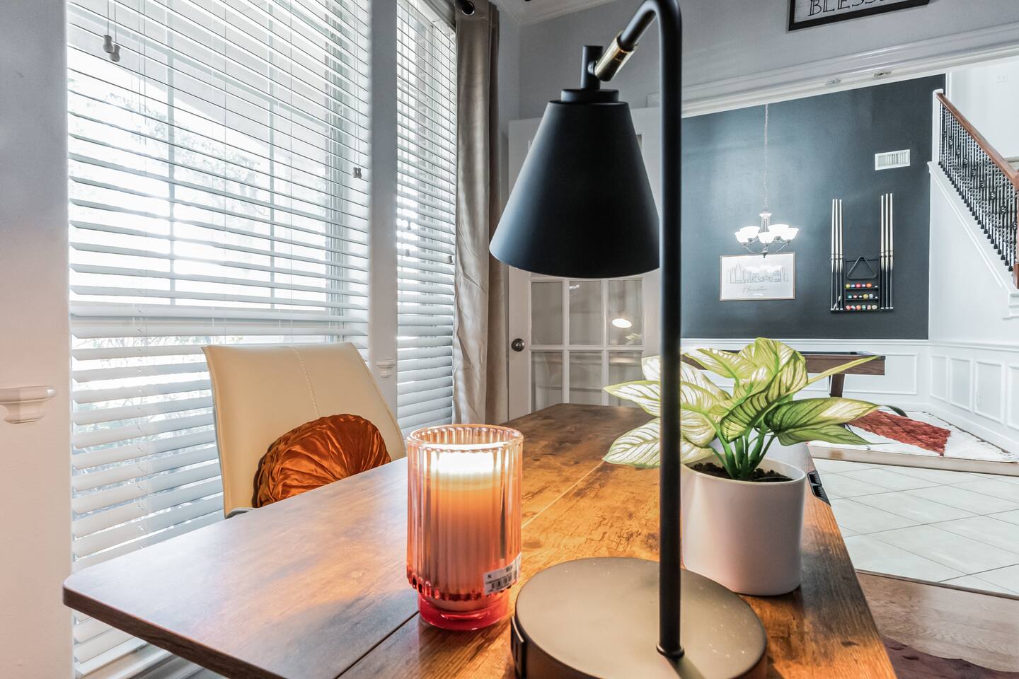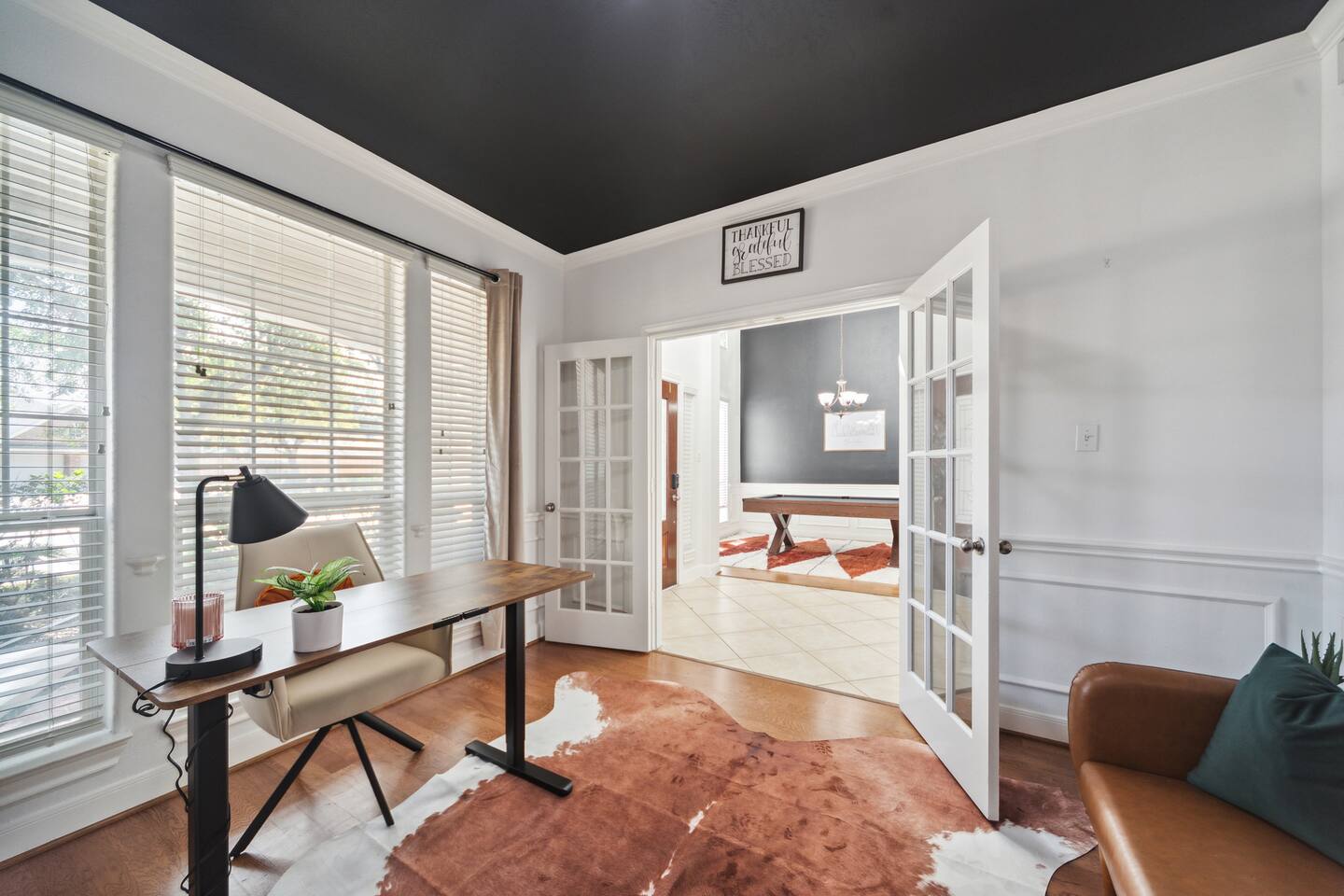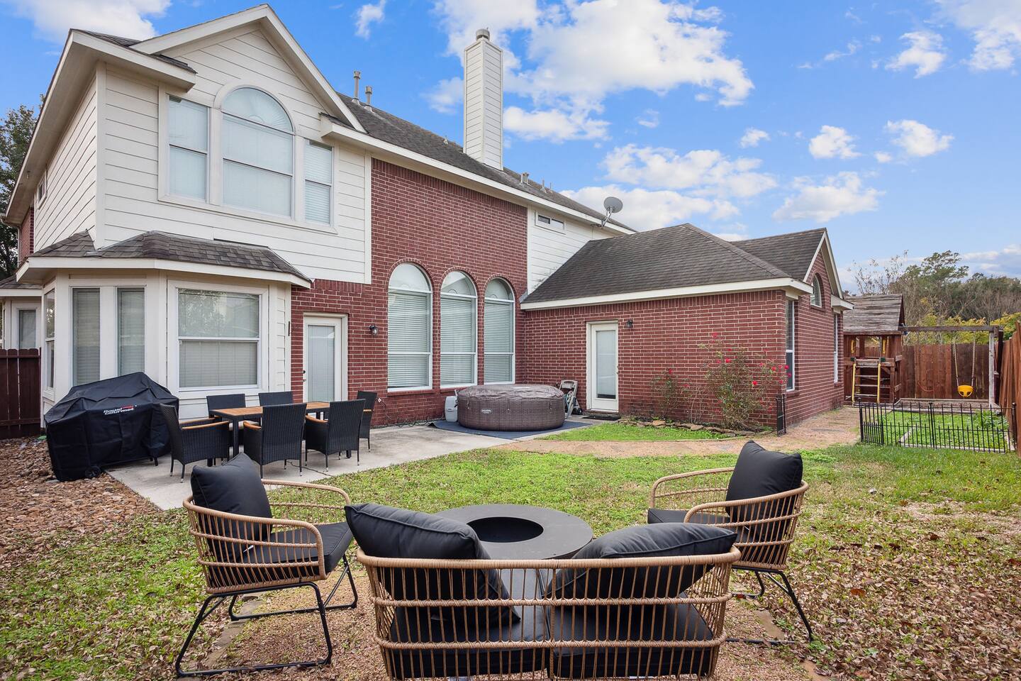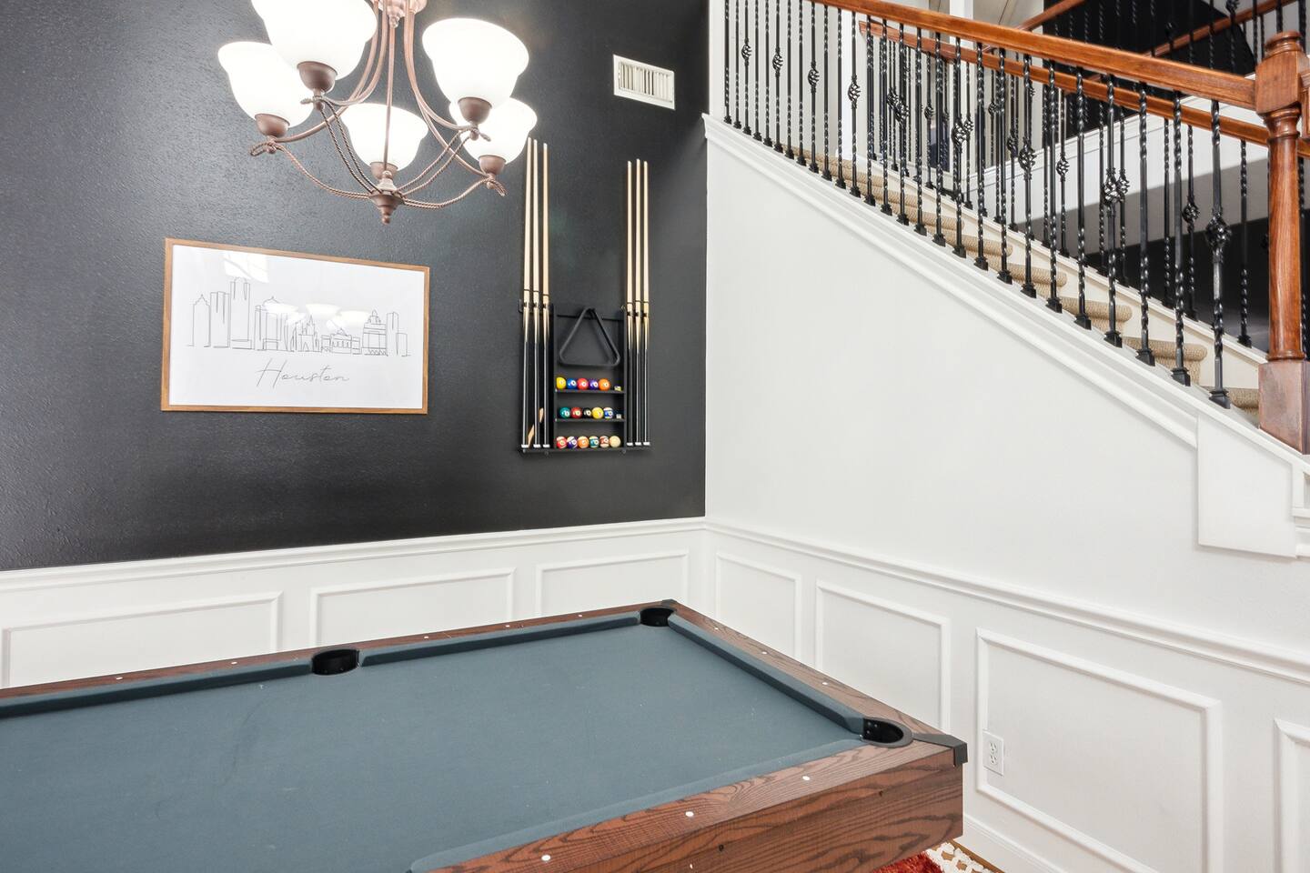 This spacious home is ready for your next getaway or mid term stay! This home has been stylishly designed to incorporate a fresh twist on Southern style! With amenities like the pool table, home office, media room, outdoor play area & hot tub there is something here for everyone and every age! 30-40 minutes to Downtown Houston 15 minutes to Six Flags Hurricane Harbor Take a day trip to Galveston - 1.5 hours Centrally located! Great for professionals, retreats, family stats and more!