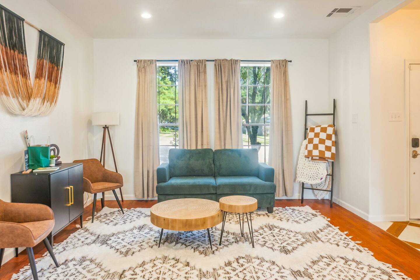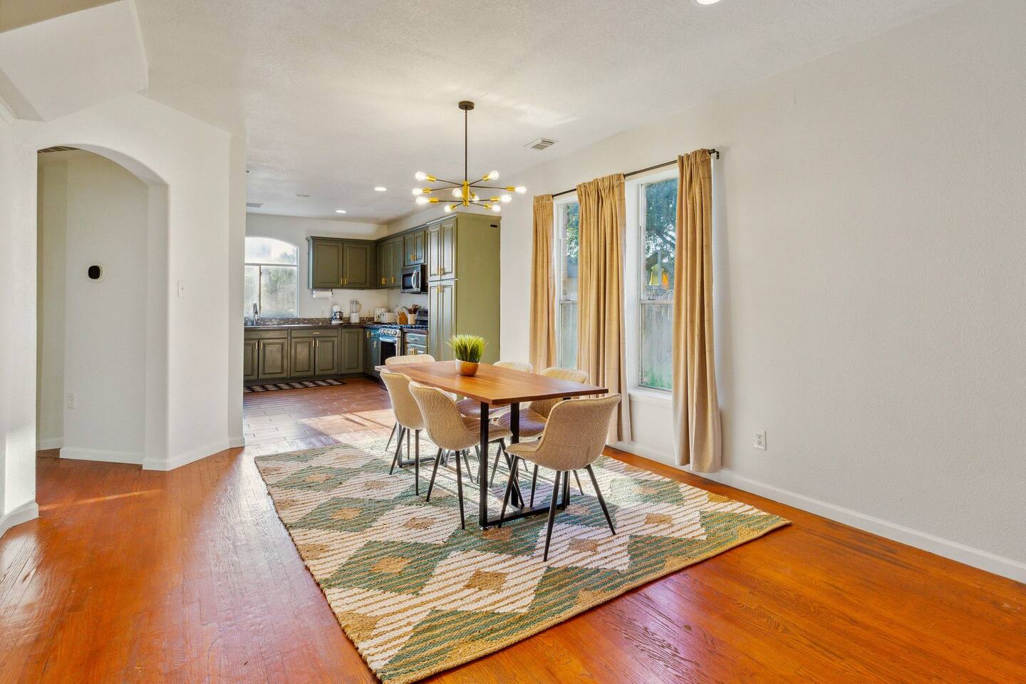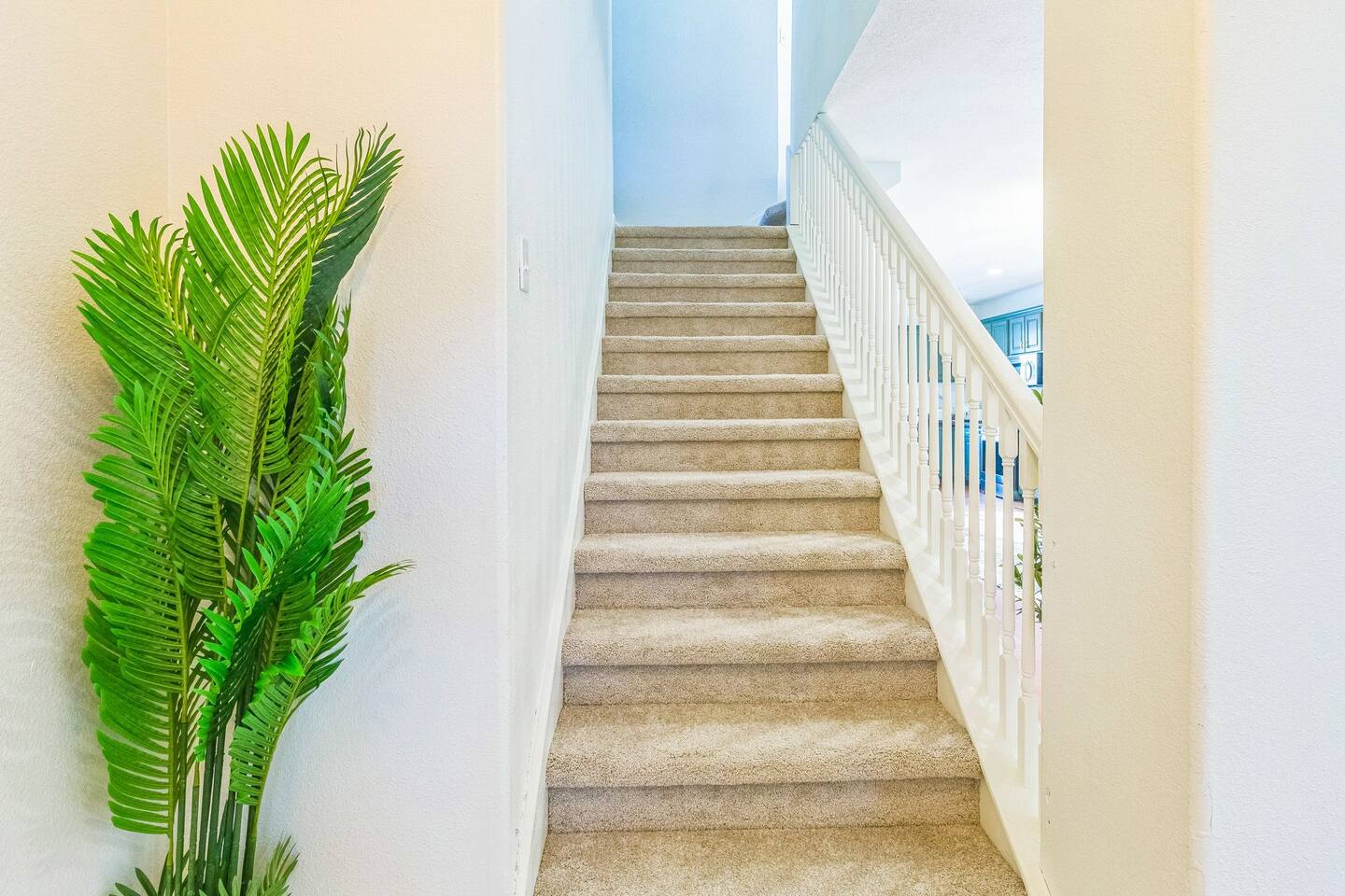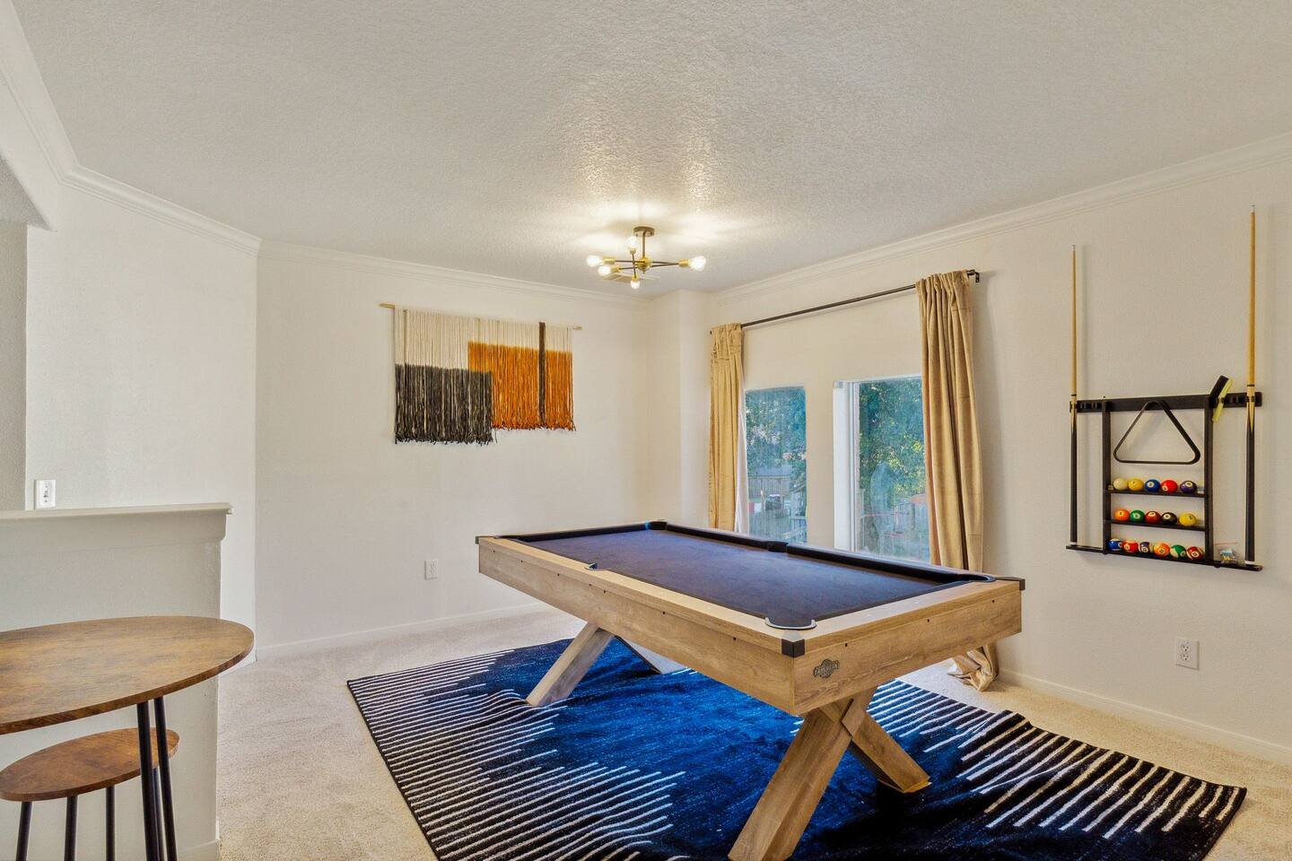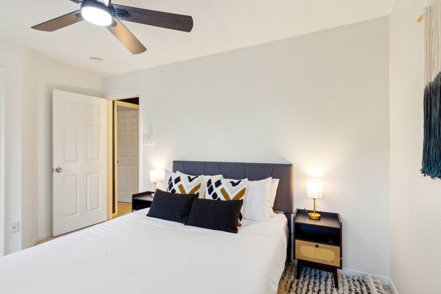 Welcome to the Vintage Texan rental, your perfect getaway in Cypress, TX! Located in a quiet cul-de-sac, this charming 5-bedroom, 3.5-bath home offers comfort, convenience, and all the amenities you need for a memorable short or mid-term stay. The house sits on an oversized lot at the bend of the road, providing a peaceful and spacious retreat for families, groups, or business travelers. Upon entering the neighborhood, you’ll immediately notice the serene atmosphere, ideal for a relaxing stay away from the hustle and bustle of the city. Parking is a breeze, with a two-car garage and a large driveway that can accommodate up to four cars. There's also ample street parking available. The front yard, adorned with a beautiful palm tree and well-lit landscaping, creates a warm and inviting welcome. Your arrival will be seamless, thanks to our Yale smart lock, pre-programmed with the last four digits of your phone number. This convenient feature ensures that accessing the home is effortless throughout your stay. As you step through the front door, you’re greeted by a cozy sitting area, perfect for luggage drop-off or a moment to relax. Here, you’ll also find a welcome gift and our house manual with all the information you need to make your stay as smooth as possible. The front sitting area leads into the open and airy dining room, which is spacious enough for large family meals or gatherings with friends. The dining area flows seamlessly into the beautifully updated kitchen, which is fully stocked with everything you’ll need for your stay. Whether you're preparing a gourmet meal, brewing a fresh cup of coffee in the morning, or stocking the fridge and pantry with snacks, the kitchen is designed to accommodate every culinary need. Stainless steel appliances and ample counter space make meal prep a breeze. Just around the corner, you'll find the main living room downstairs. This open-concept space features a cozy U-shaped sectional, a large TV, and a beautiful remote-controlled fireplace, perfect for relaxing after a long day. The shuffleboard table adds a fun element to the space, inviting friendly competition among guests. From the living room, you can easily access the backyard, making BBQ season that much easier. At the front of the house, the staircase takes you to the second floor, where the space splits into two wings. To the right, you'll find the game room, complete with a pool table ready for your next match. This side of the house also features a private bedroom with a queen bed and its own ensuite bathroom, complete with a walk-in shower—ideal for guests seeking extra privacy. On the left side of the second floor, you’ll discover a cozy upstairs living room, thoughtfully designed with kids in mind. It features a comfortable modular sleeper sofa, a TV, and a soft, washable rug. This room provides a perfect space for younger guests to relax and watch their favorite shows or movies. Off this living room is the primary bedroom, your own personal sanctuary during your stay. This luxurious room includes a king-size bed, a sitting chair, and a TV for unwinding with a good movie or show. The en-suite bathroom is equally impressive, featuring a large soaking tub, a walk-in shower with a rainhead, and a double vanity. You'll have plenty of storage space with a walk-in closet and dresser, ensuring you can unpack and feel right at home. The primary suite also includes a dual-purpose room just off the bedroom. This additional space is furnished with a full-size daybed and a sit/stand desk, perfect for anyone needing a quiet workspace. The 43-inch TV in this room can also double as a monitor if needed. On the opposite side of the upstairs living room, you’ll find two additional bedrooms and a third bathroom. One bedroom is equipped with a king-size bed, while the other features a queen-size bed. Both rooms include smart TVs and sit/stand desks, offering even more work-from-home options. The shared bathroom on this side has a full-size tub and shower combo, ensuring all guests have access to everything they need for a comfortable stay. Now, step outside into the backyard, where a brand-new concrete slab has been poured to create the ultimate outdoor oasis. The backyard is fully fenced, making it a safe and fun space for children and pets to roam freely. A string of lights surrounds the outdoor area, creating a cozy and inviting atmosphere for evenings under the stars. A large 7-person inflatable hot tub awaits you, perfect for relaxing after a long day of exploring or working. Gather around the fire pit, which seats six comfortably, and enjoy a night of conversation and s’mores with family or friends. In addition to the hot tub and fire pit, the backyard includes a BBQ area complete with a charcoal grill and smoker for all your outdoor cooking needs. The outdoor dining space provides plenty of seating for meals al fresco, making this area ideal for BBQ season. Our location is a highlight of the Vintage Texan. We're just 20-30 minutes from downtown Houston and only 10 minutes from the Cypress Boardwalk, offering quick access to dining, shopping, and entertainment. This home is also conveniently located near highly rated schools, top-tier medical facilities, and a variety of shopping options, making it the perfect place for families and professionals alike. We’ve designed every aspect of this home with comfort, convenience, and enjoyment in mind. Whether you’re here for work, play, or a little of both, our Vintage Texan rental is the perfect place to relax, unwind, and create lasting memories. We hope you enjoy your stay, and if you have any questions during your visit, please don't hesitate to reach out!