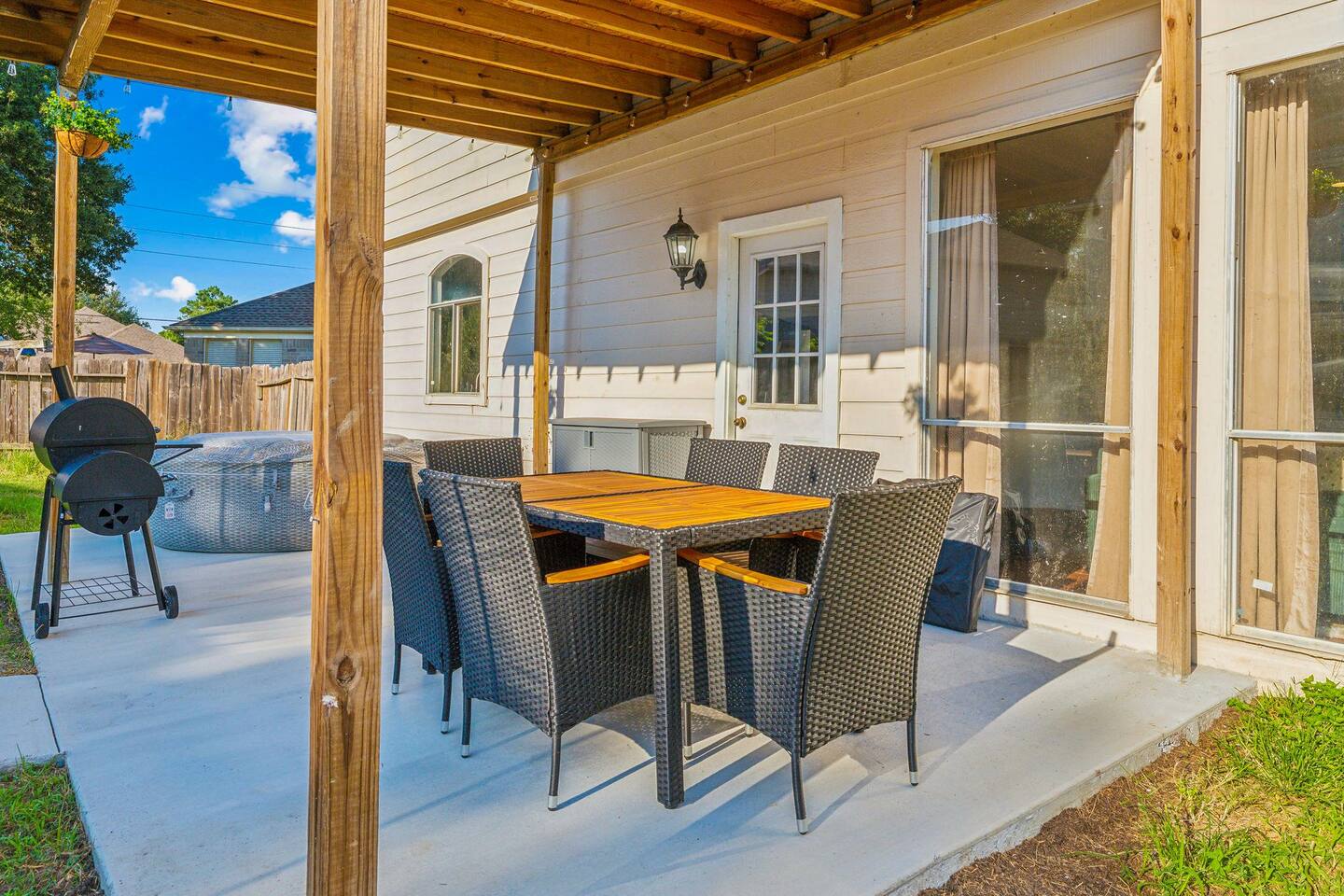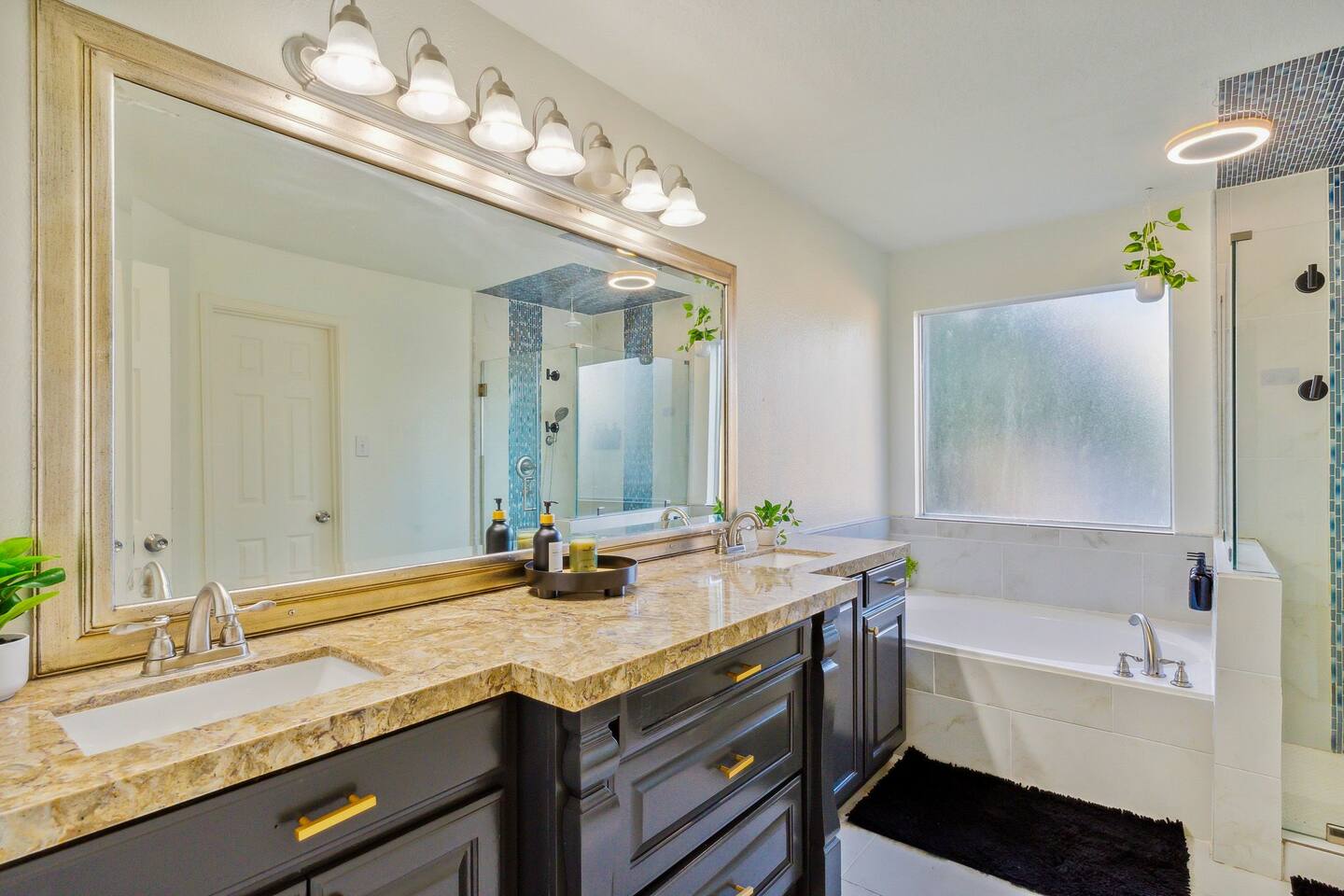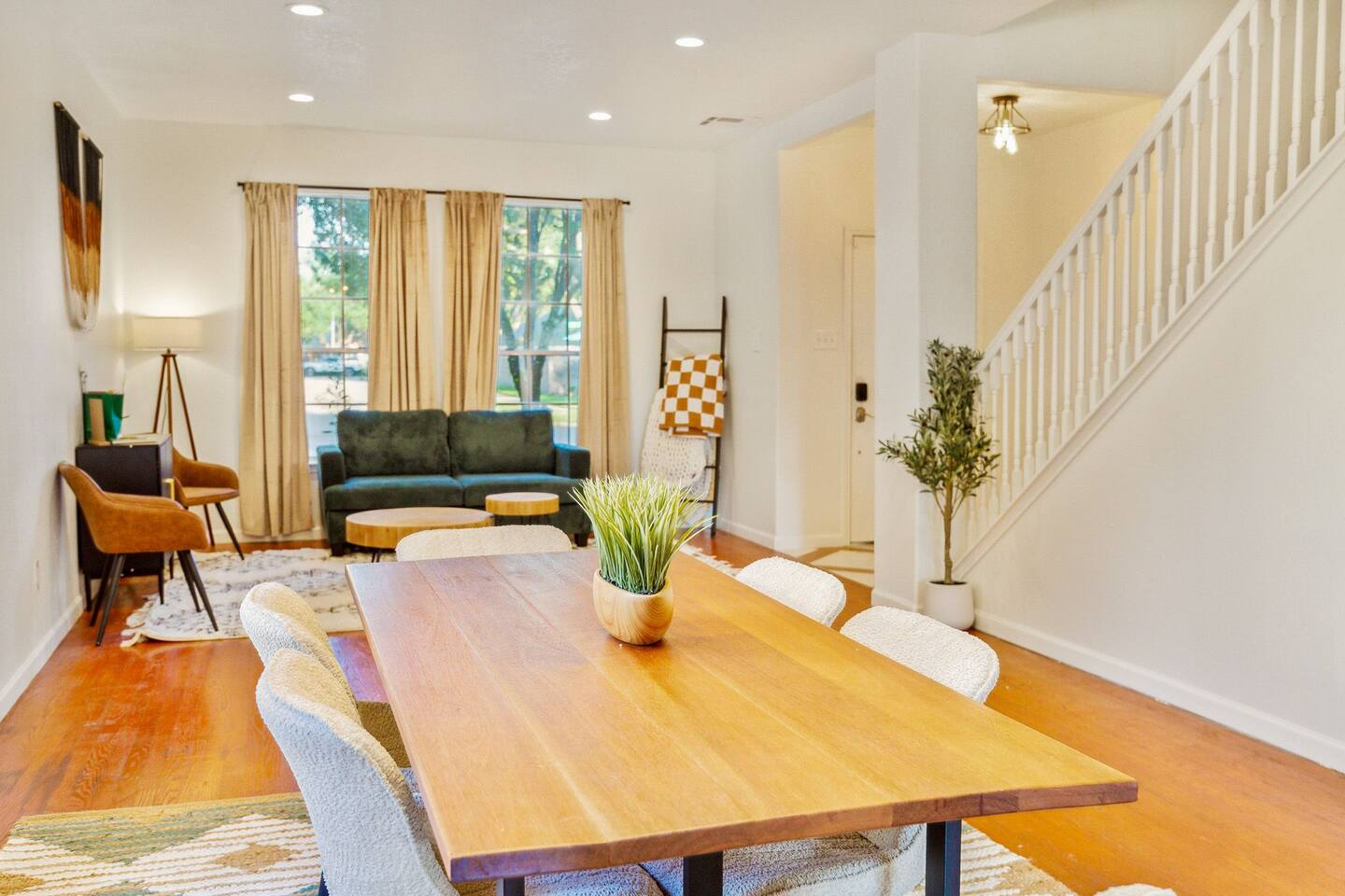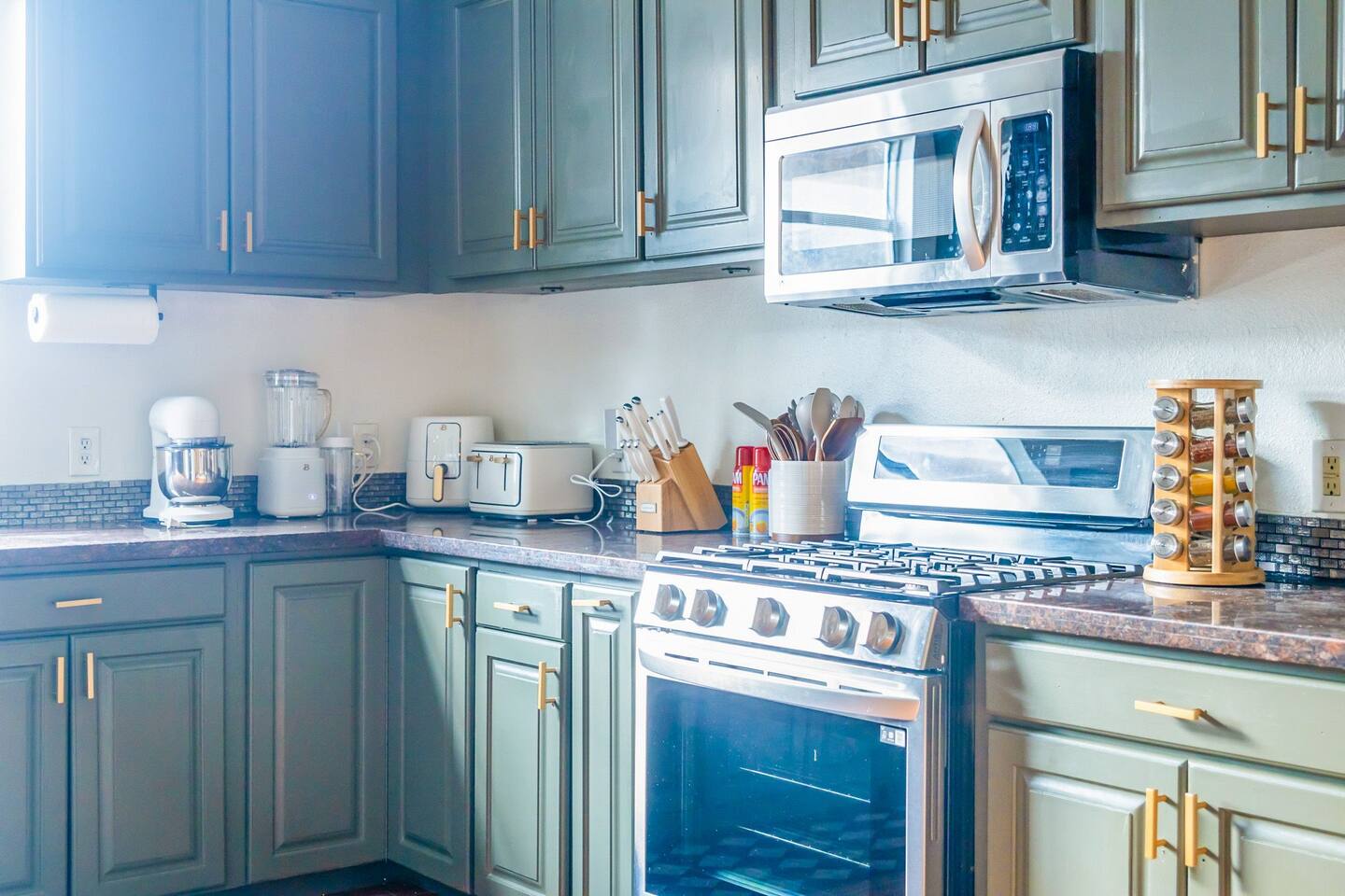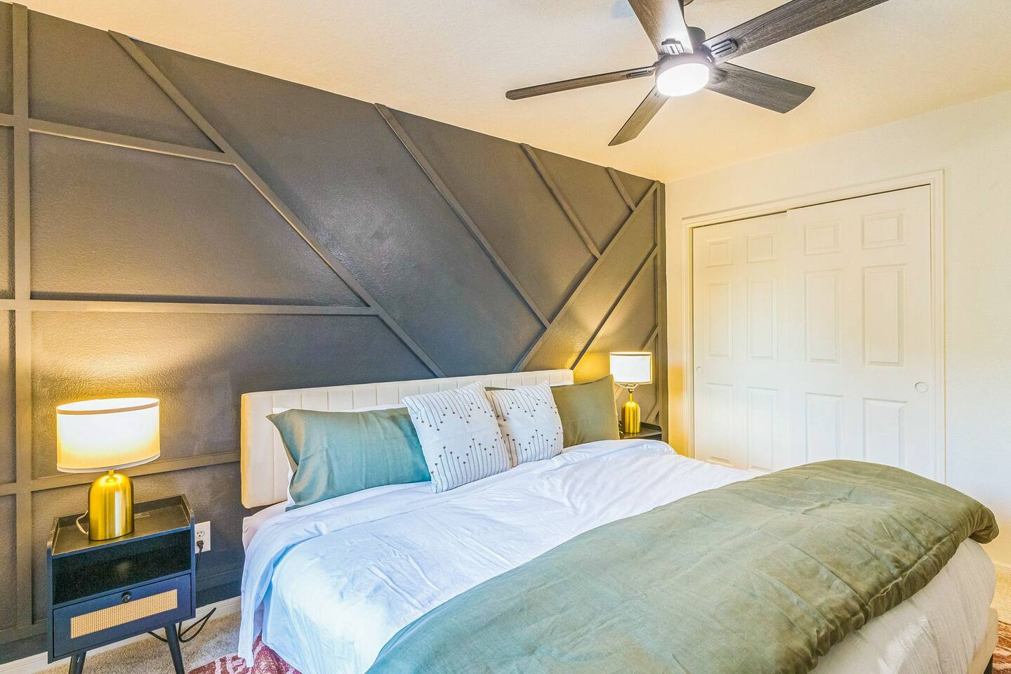 Welcome to the Vintage Texan rental, your perfect getaway in Cypress, TX! Located in a quiet cul-de-sac, this charming 5-bedroom, 3.5-bath home offers comfort, convenience, and all the amenities you need for a memorable short or mid-term stay. The house sits on an oversized lot at the bend of the road, providing a peaceful and spacious retreat for families, groups, or business travelers. Upon entering the neighborhood, you’ll immediately notice the serene atmosphere, ideal for a relaxing stay away from the hustle and bustle of the city. Parking is a breeze, with a two-car garage and a large driveway that can accommodate up to four cars. There's also ample street parking available. The front yard, adorned with a beautiful palm tree and well-lit landscaping, creates a warm and inviting welcome. Your arrival will be seamless, thanks to our Yale smart lock, pre-programmed with the last four digits of your phone number. This convenient feature ensures that accessing the home is effortless throughout your stay. As you step through the front door, you’re greeted by a cozy sitting area, perfect for luggage drop-off or a moment to relax. Here, you’ll also find a welcome gift and our house manual with all the information you need to make your stay as smooth as possible. The front sitting area leads into the open and airy dining room, which is spacious enough for large family meals or gatherings with friends. The dining area flows seamlessly into the beautifully updated kitchen, which is fully stocked with everything you’ll need for your stay. Whether you're preparing a gourmet meal, brewing a fresh cup of coffee in the morning, or stocking the fridge and pantry with snacks, the kitchen is designed to accommodate every culinary need. Stainless steel appliances and ample counter space make meal prep a breeze. Just around the corner, you'll find the main living room downstairs. This open-concept space features a cozy U-shaped sectional, a large TV, and a beautiful remote-controlled fireplace, perfect for relaxing after a long day. The shuffleboard table adds a fun element to the space, inviting friendly competition among guests. From the living room, you can easily access the backyard, making BBQ season that much easier. At the front of the house, the staircase takes you to the second floor, where the space splits into two wings. To the right, you'll find the game room, complete with a pool table ready for your next match. This side of the house also features a private bedroom with a queen bed and its own ensuite bathroom, complete with a walk-in shower—ideal for guests seeking extra privacy. On the left side of the second floor, you’ll discover a cozy upstairs living room, thoughtfully designed with kids in mind. It features a comfortable modular sleeper sofa, a TV, and a soft, washable rug. This room provides a perfect space for younger guests to relax and watch their favorite shows or movies. Off this living room is the primary bedroom, your own personal sanctuary during your stay. This luxurious room includes a king-size bed, a sitting chair, and a TV for unwinding with a good movie or show. The en-suite bathroom is equally impressive, featuring a large soaking tub, a walk-in shower with a rainhead, and a double vanity. You'll have plenty of storage space with a walk-in closet and dresser, ensuring you can unpack and feel right at home. The primary suite also includes a dual-purpose room just off the bedroom. This additional space is furnished with a full-size daybed and a sit/stand desk, perfect for anyone needing a quiet workspace. The 43-inch TV in this room can also double as a monitor if needed. On the opposite side of the upstairs living room, you’ll find two additional bedrooms and a third bathroom. One bedroom is equipped with a king-size bed, while the other features a queen-size bed. Both rooms include smart TVs and sit/stand desks, offering even more work-from-home options. The shared bathroom on this side has a full-size tub and shower combo, ensuring all guests have access to everything they need for a comfortable stay. Now, step outside into the backyard, where a brand-new concrete slab has been poured to create the ultimate outdoor oasis. The backyard is fully fenced, making it a safe and fun space for children and pets to roam freely. A string of lights surrounds the outdoor area, creating a cozy and inviting atmosphere for evenings under the stars. A large 7-person inflatable hot tub awaits you, perfect for relaxing after a long day of exploring or working. Gather around the fire pit, which seats six comfortably, and enjoy a night of conversation and s’mores with family or friends. In addition to the hot tub and fire pit, the backyard includes a BBQ area complete with a charcoal grill and smoker for all your outdoor cooking needs. The outdoor dining space provides plenty of seating for meals al fresco, making this area ideal for BBQ season. Our location is a highlight of the Vintage Texan. We're just 20-30 minutes from downtown Houston and only 10 minutes from the Cypress Boardwalk, offering quick access to dining, shopping, and entertainment. This home is also conveniently located near highly rated schools, top-tier medical facilities, and a variety of shopping options, making it the perfect place for families and professionals alike. We’ve designed every aspect of this home with comfort, convenience, and enjoyment in mind. Whether you’re here for work, play, or a little of both, our Vintage Texan rental is the perfect place to relax, unwind, and create lasting memories. We hope you enjoy your stay, and if you have any questions during your visit, please don't hesitate to reach out!