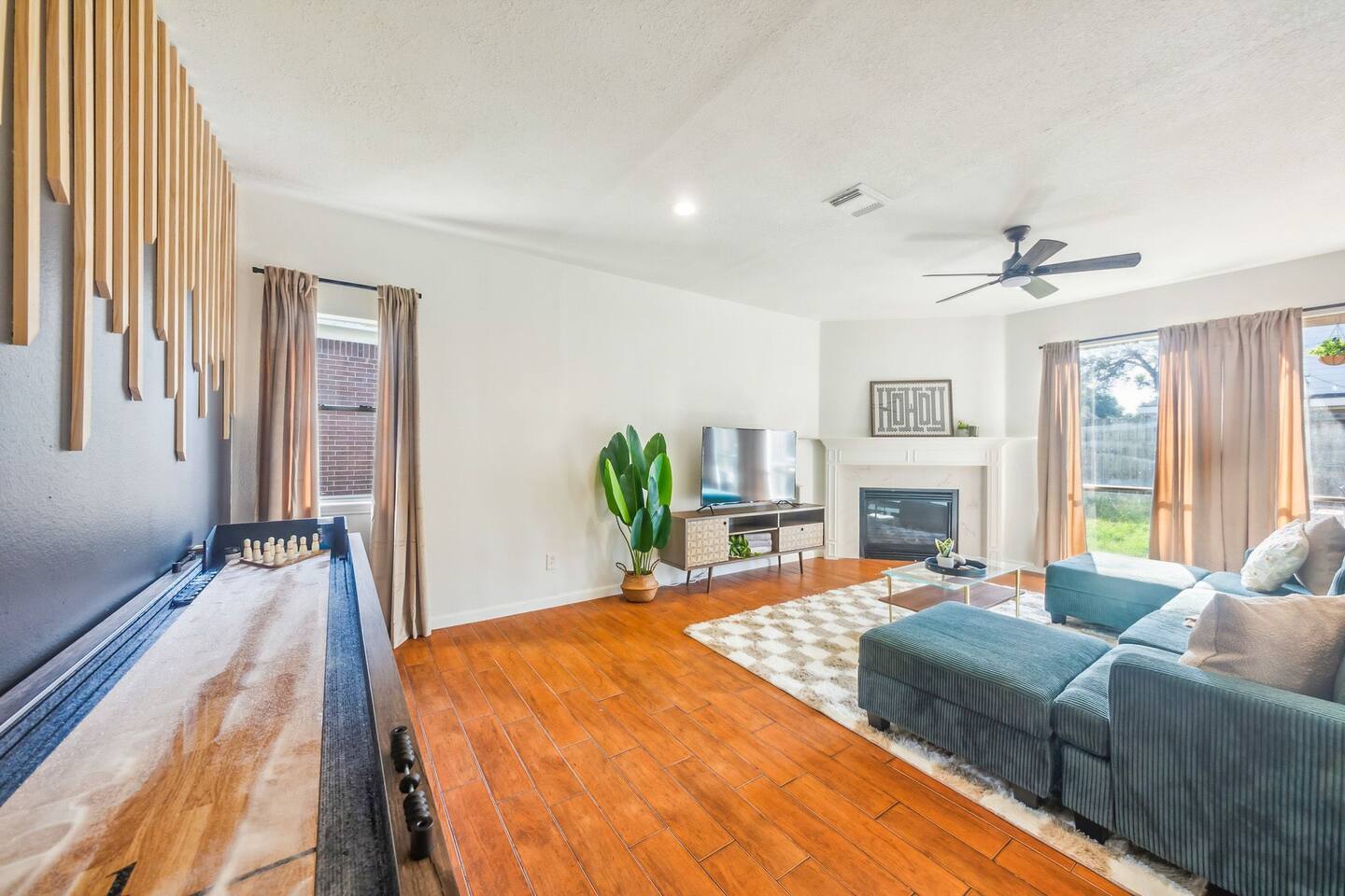Welcome to our Vintage Texan rental in Cypress, TX! This 5-bedroom, 3.5-bath home is perfect for both short and mid-term stays. Enjoy 3 spacious living areas, a pool table, shuffleboard, and an expansive backyard with a fire pit, BBQ, and hot tub. Work remotely with high-speed internet and a large office off the master bedroom, plus additional desks throughout. The fully stocked kitchen is ideal for passionate chefs. Relax and unwind in this uniquely designed, comfortable retreat!