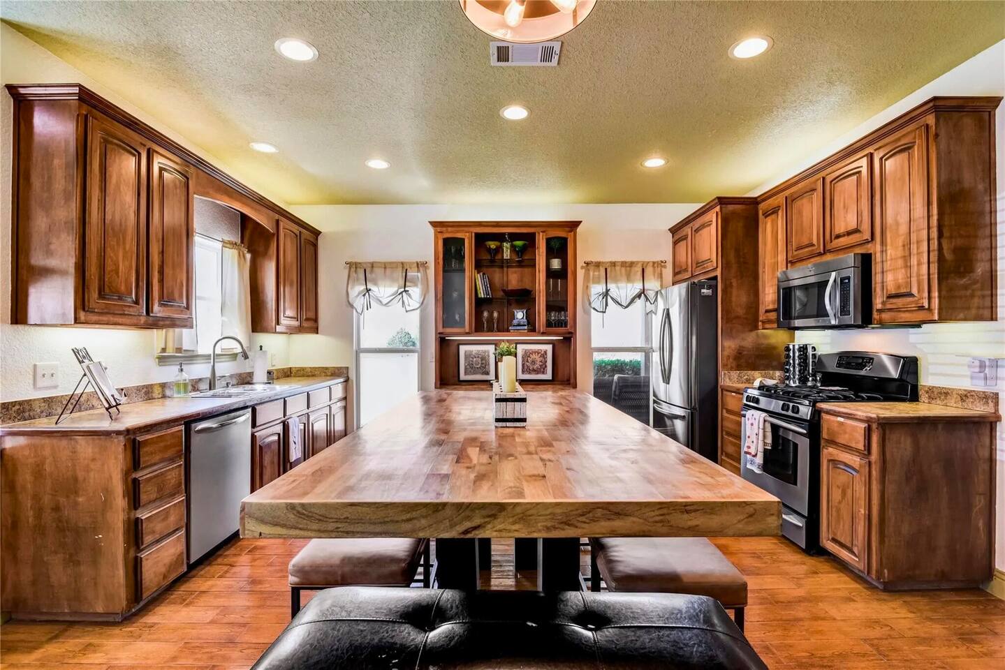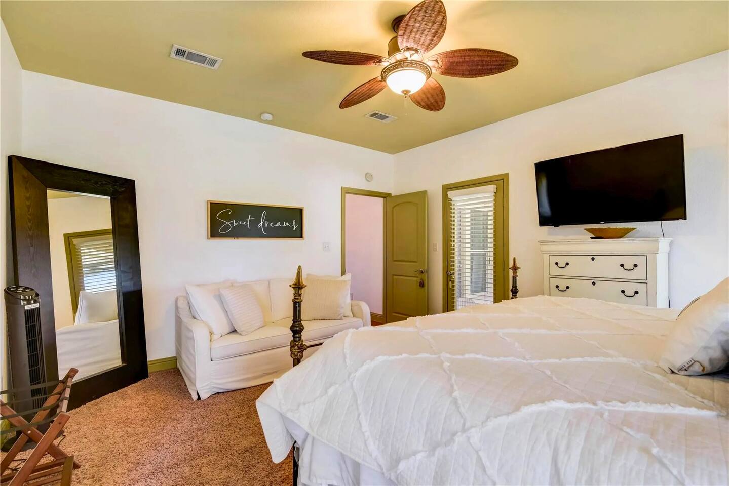 🏡 THE SPACE 🌹 The Rosewood House (Main Home – 4BR | 2BA) A warm, feminine, elevated rustic home featuring a spacious open-concept layout, soft décor elements, and plenty of natural light. Highlights: 4 bedrooms (1 king, 1 queen, 1 double, 2 singles, & sleeper sofa + air mattress) 2 full bathrooms Large open kitchen + dining + living area Expansive front porch with countryside views Covered back patio overlooking the firepit Perfect for wedding parties & family gatherings 🌑 The Blackwood Barn (Secondary Home – 3BR | 2BA) A cozy, masculine-inspired retreat with rustic style and a huge covered patio perfect for relaxing and entertaining. Highlights: 3 bedrooms (1 king, 1 queen, 1 double, & sleeper sofa) 2 full bathrooms Open kitchen + living space Massive covered patio with porch swing Outdoor games and lounge seating Ideal for families, teens, or groups seeking their own hangout zone 🏛️ The Bowen Reserve Venue (Event Venue – Add-On Fee Required) A refined, neutral, and flexible event space ideal for weddings, reunions, workshops, networking events, and celebrations. Details: 1,200 sq. ft. open event hall 400 sq. ft. prep kitchenette Two half bathrooms 10 tables + 60 chairs included Dusk-to-dawn lighting Event fee required for hosting events: $1,500 Guests booking the full-property stay may add on the venue for events; it is also available for daytime use at hourly or daily rates. 🌾 OUTDOOR FEATURES Enjoy the beauty of Texas countryside with amenities across the property: Firepit area with seating Large patios and porches for outdoor dining Open acreage perfect for photos, games, and exploring Sunset views across the rolling land Ample parking for large groups 🎉 EVENTS & GATHERINGS Bowen Acres welcomes: Weddings Micro-weddings Rehearsal dinners Family reunions Retreats & workshops Corporate offsites Birthday/anniversary celebrations Event fee: $1,500 Includes venue access, tables/chairs, lighting, and prep space. Daytime-only rentals available upon request. 🛌 SLEEPING ARRANGEMENTS Rosewood House Bedroom 1: King bed Bedroom 2: Queen bed Bedroom 3: Queen bed Bedroom 4: Full Living Room: Sofa Sleeper Blackwood Barn Bedroom 1: King bed Bedroom 2: Queen bed Bedroom 3: Full Living Room: Sofa Sleeper + Air Mattress Sleeps up to 22 guests depending on guest makeup. ⭐ IDEAL FOR: Large families Multi-family trips Wedding groups Corporate retreats Content creators Groups seeking privacy and open space Bowen Acres is a peaceful retreat where rustic charm meets refined comfort—perfect for making unforgettable memories under the big Texas sky.