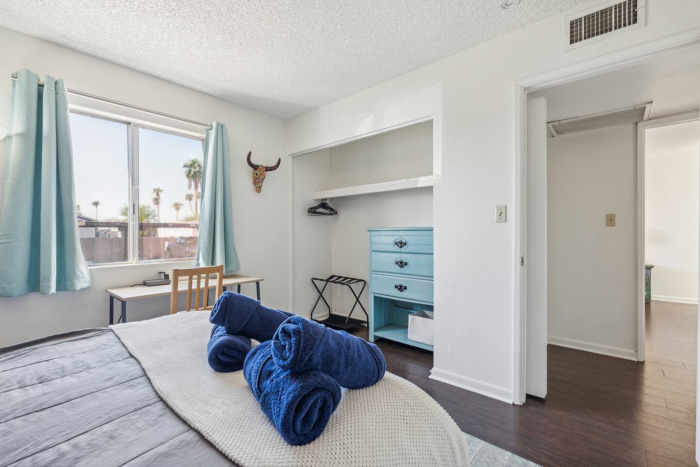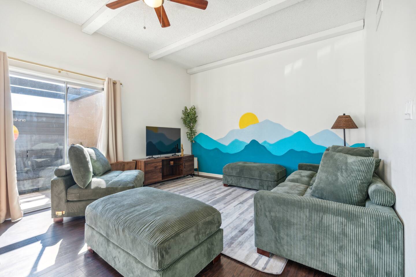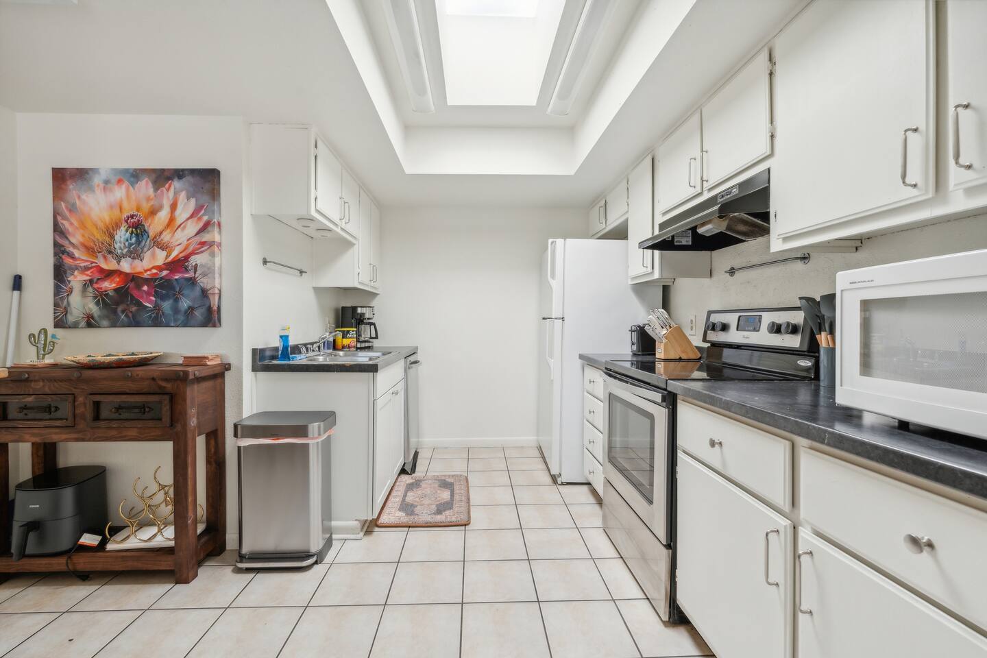 The perfect escape for those wanting to soak up the sun, enjoy Spring Training games, and spend some time in the great outdoors. A bright and airy interior with high ceilings and modern decor makes this is a wonderful getaway for everyone! Check in at anytime with the keyless lock. Two bedroom, two bath townhome. No stairs to climb and no one above or below us. High ceilings in the living room to give the room a spacious feel as well as sunroofs in parts of the home to give you natural light!. Large gated patio with seating to read and relax. The soothing color palettes and comfortable furnishings create an inviting atmosphere for a good night's sleep. KEY FEATURES: ☀ 2 Spacious Bedroom ☀ 2 Full bathroom ☀ Full kitchen w/ stainless steel appliances ☀ Spacious living room ☀ In-unit washer + dryer ☀ Central location only minutes from trails, bars, resturants + more Modern Comfort: Enjoy the open-concept living space with chic décor, a comfortable sofa, and a large flat-screen TV, perfect for unwinding after a day of exploration. The living area opens to a private patio where you can relax with a morning coffee or evening drink.. Two Cozy Bedrooms: King size bed with an attached master sweet and private patio. Refreshing Pool: Take a dip in the sparkling community pool, available for guest use. It’s a great spot to cool off from the Arizona sun or to simply relax with a book. Convenient Amenities: Free Wi-Fi, in-unit laundry facilities, air conditioning, and free parking are just some of the thoughtful amenities provided to enhance your stay. Explore the Area: Arizona State University: 8 minutes away Tempe Beach Park: 9 minutes away Desert Botanical Garden: 12 minutes away Phoenix Zoo: 11 minutes away Old Town Scottsdale: 18 minutes away Scottsdale Fashion Square: 17 minutes away