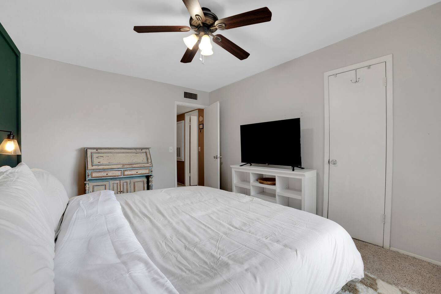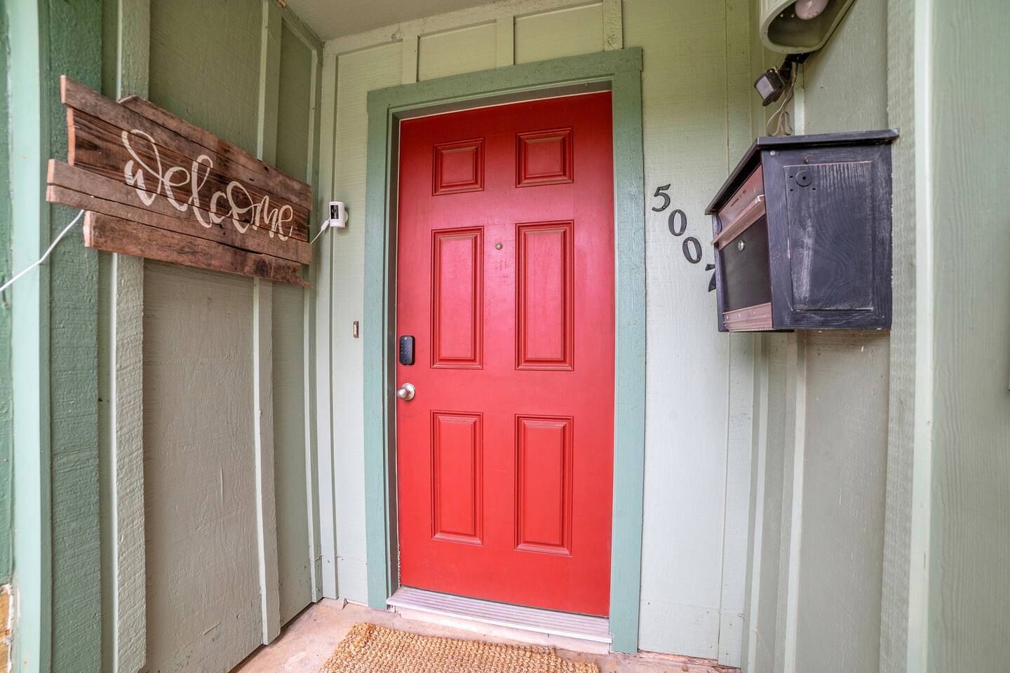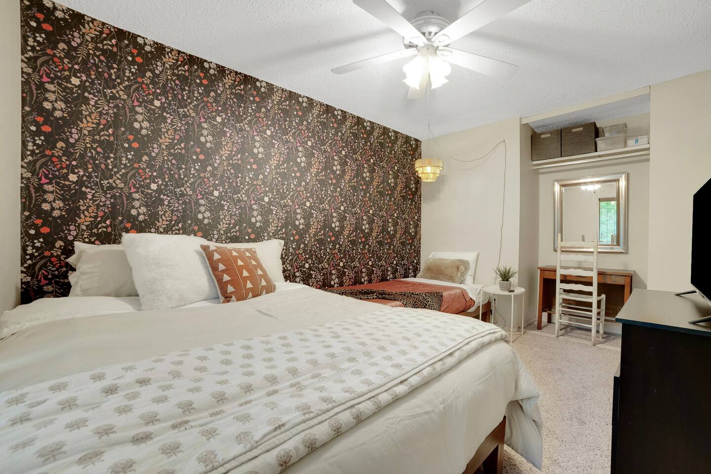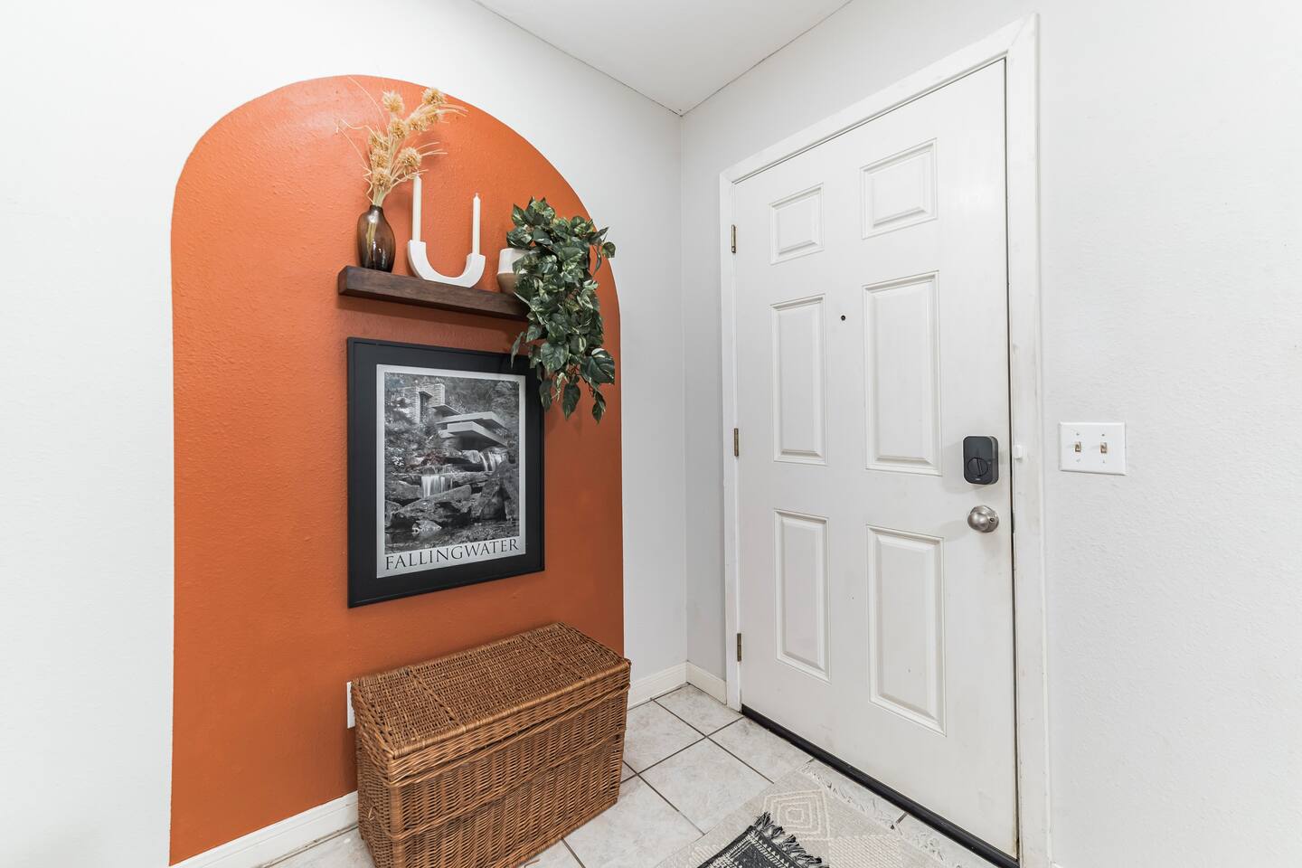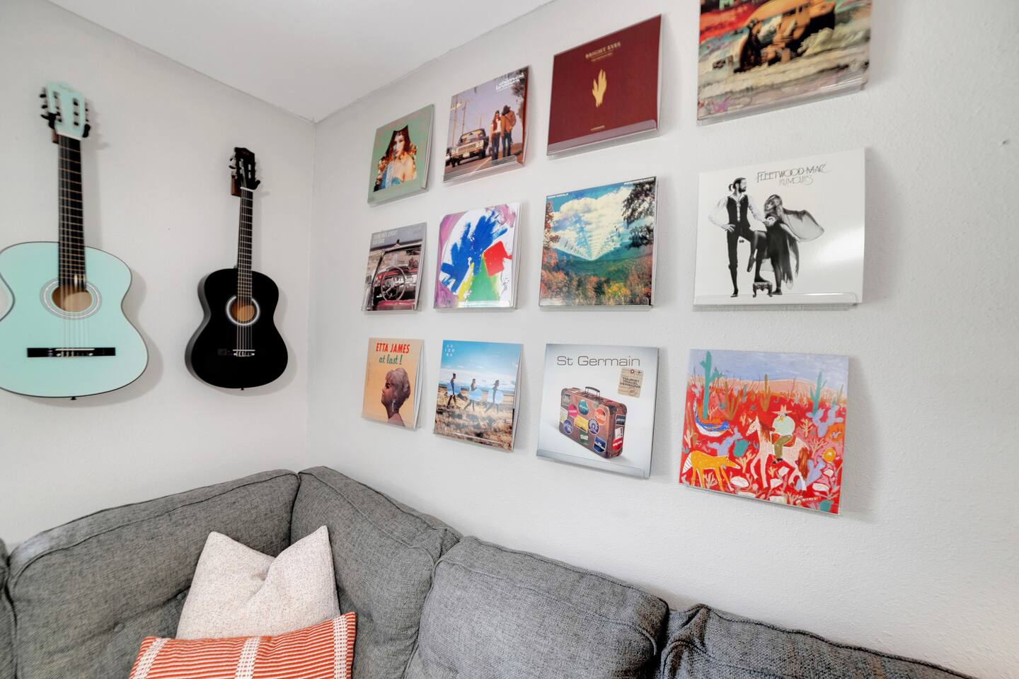 The Space: Step into The Vinyl Wildflower, a bold and cozy 3-bedroom, 1.5-bath Austin townhouse designed for unforgettable stays. From the moment you walk in, the colorful mural, curated vinyl collection, and welcoming vibe set the tone. Perfect for girl trips, family adventures, or work + play retreats, this space was made to unwind after soaking up everything Austin has to offer. Downstairs features a spacious, fully stocked kitchen with everything you need to cook up local market finds, a dining area for 4–6, and a chic half bath. The living room gives you all the cozy vibes with records, a record player, and laid-back lounge space to recharge. Upstairs, you’ll find: • Primary Bedroom: King bed + desk + smart TV • Guest Room 1: Queen + Twin bed + desk • Guest Room 2: Queen bed + desk + smart TV • Full bathroom with tub/shower combo Outdoor Space: Relax on the private, pet-friendly turf patio with outdoor seating, a propane grill, and custom Austin mural — the perfect backdrop for morning coffee or late-night hangs. Community Perks: The community pool is literally across the street — ideal for kiddos or a mid-day cool-off. Parking: We offer 2 dedicated parking spots + plenty of visitor parking (up to 3 cars total). Location Highlights (10–15 min drive): • Downtown Austin • Zilker Park & Barton Springs • South Congress (SoCo) • Lady Bird Lake Hike & Bike Trail • The Domain • Mueller District • Austin-Bergstrom Airport (20 mins) Extras & Amenities: • Pet-friendly (with turf yard!) • Fully stocked kitchen (blender, toaster, air fryer, etc.) • High-speed WiFi • Washer/dryer in garage • Smart TVs (in 2 rooms) • Desks in every bedroom • Record player + vinyl collection • Self check-in + smart lock • Coffee, teas, spices & more