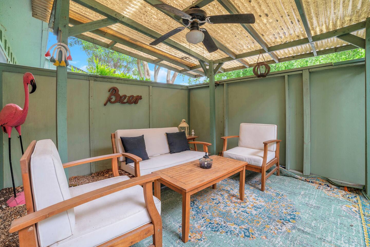 Quiet hours are from 10pm to 9am per the HOA and city. Unauthorized guests are not allowed at the property. We do not allow campers or trailers to be parked at the property. Pool access is strictly for our guests. No events are allowed here unfortunately. There is a pet fee per pet of $150 per stay. Pets are not allowed on the furniture and must be secured when not in your presence. There is a smoking fine of up to $500 if any evidence of smoking anything in the studio is discovered. This may include discovery of ash, refuse or smell by our cleaning team or other management staff.