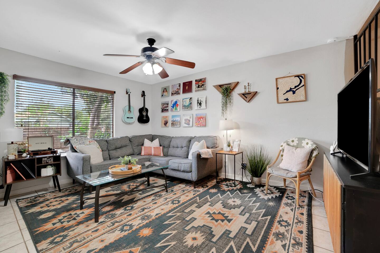 Welcome to The Vinyl Wildflower — your perfect Austin retreat! Just 10–15 mins from downtown, Zilker, & The Domain, this 3BR townhouse blends music vibes with boho charm. Enjoy a private patio, community pool, record player, mural wall, and pet-friendly turf. Sleeps 7 comfortably with 1.5 baths, desks in every room, and smart TVs. Ideal for girl trips, families, and creative getaways.