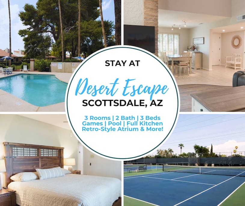 Relax with the whole family at this peaceful desert home! This 3BR 2 Bath Townhome has everything you need to feel right at home and great place to experience all Scottsdale has to offer. Enjoy our amazing amenities including spacious patio and grill, 4 community pools (so it's never crowded) and our tennis/pickleball courts. ☀ 7 min from Sky Harbor ☀ 6 minutes from Old Town Scottsdale ☀ 5 min to SF Giants Scottsdale Stadium ☀ Mins to amazing bars, restaurants, & shopping! STR Lic # 2035127